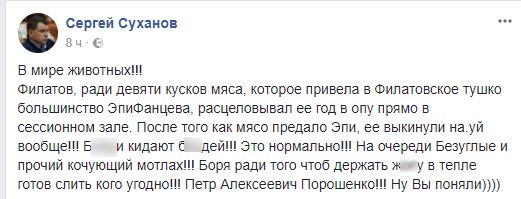 "В последнее время госпожа Епифанцева систематически позволяла себе неоднозначные публичные высказывания, чем вызвала справедливое общественное возмущение", — написал Филатов в Facebook.