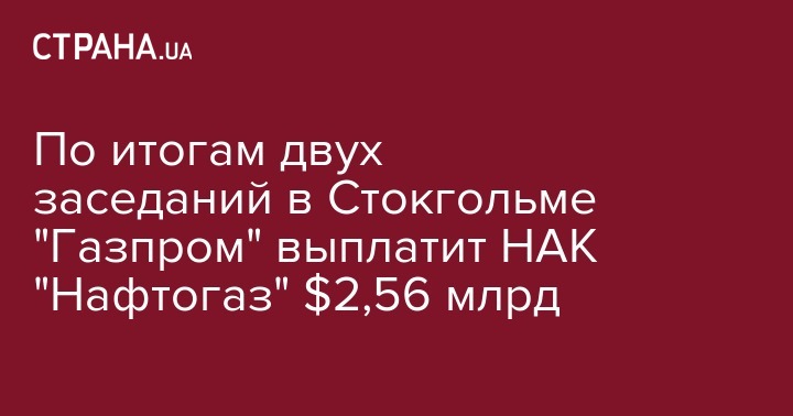 Арбитраж Торговой палаты Стокгольма частично удовлетворил требования "Нафтогаза", постановив, что Газпром должен заплатить ей $4,63 млрд за недопоставку газа по транзитному договору.