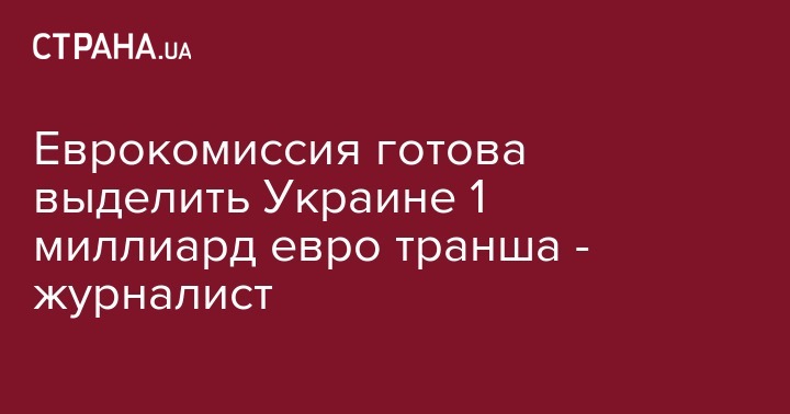 Еврокомиссия готова выделить Украине 1 миллиард евро транша - журналист