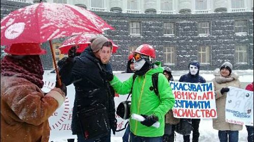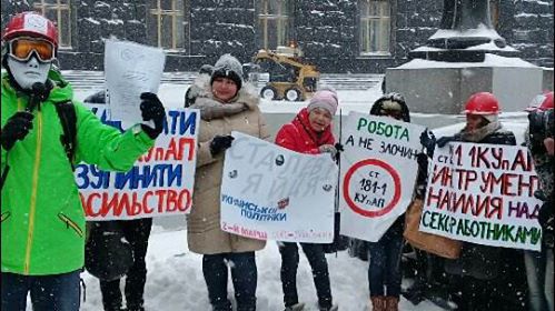 Несмотря на мороз и сильный снегопад в Киеве, в центре столицы проходит акция секс-работников под названием "Сталевi яйця". Об этом сообщает корреспондент "Страны".