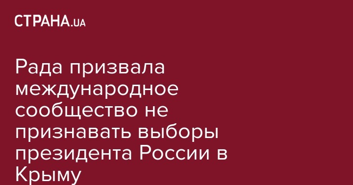 Верховная Рада поддержала проект постановления №7546 о призыве к мировому сообществу не признавать выборы президента России, которые запланированы на 18 марта, в том числе и в аннексированном Крыму, и не признавать их легитимными. Парламент поручил Министерству иностранных дел безотлагательно направить его соответствующим международным институтам.