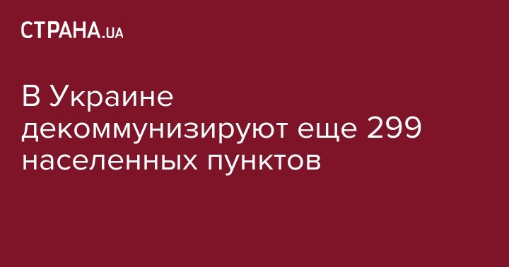В Украине в рамках закона о декоммунизации еще предстоит сменить названия 299 населенных пунктов. Об этом на своей странице в социальной сети Facebook сообщает Институт национальной памяти Украины.
