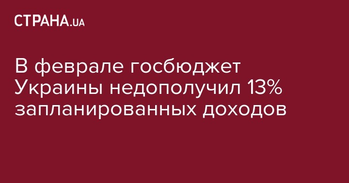 В феврале 2018 года госбюджет Украины недовыполнен по доходам на 13%.