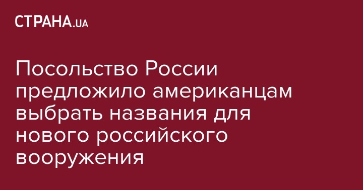 Посольство России в США объявило о конкурсе по выбору названий для новейших образцов российского вооружения и пригласила американцев принять в нем участие. Об этом сообщает РИА Новости