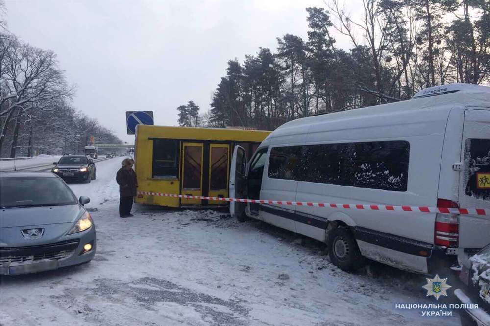 Появились подробности ДТП на Брест-Литовском шоссе, где маршрутка протаранила автобус с людьми