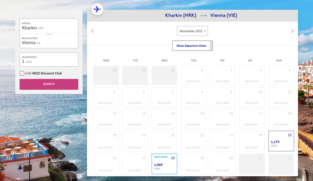 Билеты в продаже с 25 ноября 2018 года Фото: wizzair.com