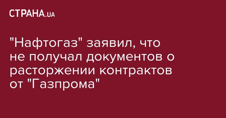 НАК "Нафтогаз Украины" не получал от ПАО "Газпром" каких-либо документов, свидетельствующих о намерениях российской компании расторгнуть договоры по контрактам на поставку и транзит газа, сообщили агентству "Интерфакс-Украина" в пресс-службе компании.