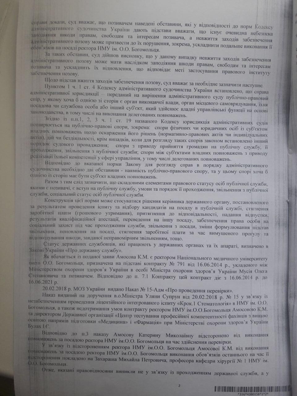 Документом остановлено действие пункта №3 Приказа Минздрава, которым ректора отстранили на 2 недели в связи с проверкой. Этим же пунктом приказа Минздрав незаконно возложил обязанности ректора на Михаила Захараша.