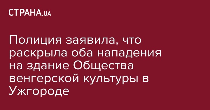 Национальная полиция раскрыла оба нападения на здание Общества венгерской культуры Закарпатья в Ужгороде, пять человек задержаны, а вероятный организатор-иностранец находится в розыске.