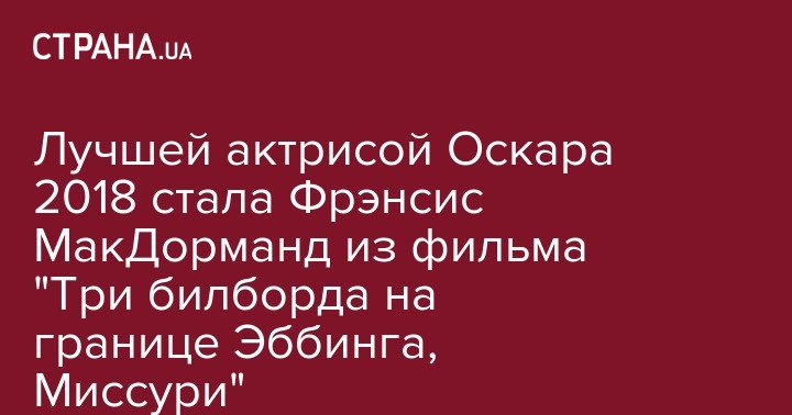 Лучшей актрисой Оскара 2018 стала Фрэнсис МакДорманд из фильма "Три билборда на границе Эббинга, Миссури"