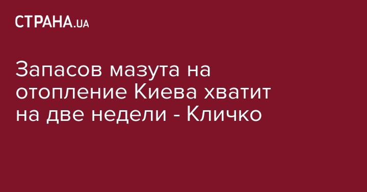 Мэр Киева Виталий Кличко заявил, что в Киеве не будет проблем с теплоснабжением, поскольку запасов мазута, которые используют в пропорции с газом, хватит еще на две недели.