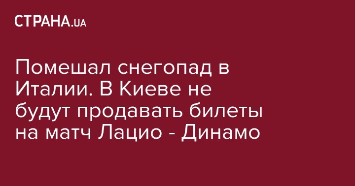 "В связи с тяжелыми погодными условиями, команда-хозяин вовремя не передала в Киев билеты на первый поединок 1/8 финала Лиги Европы УЕФА между "Лацио" и "Динамо" . Продажа билетов в Киеве осуществляться не будет", - уточнили в пресс-службе "Динамо.