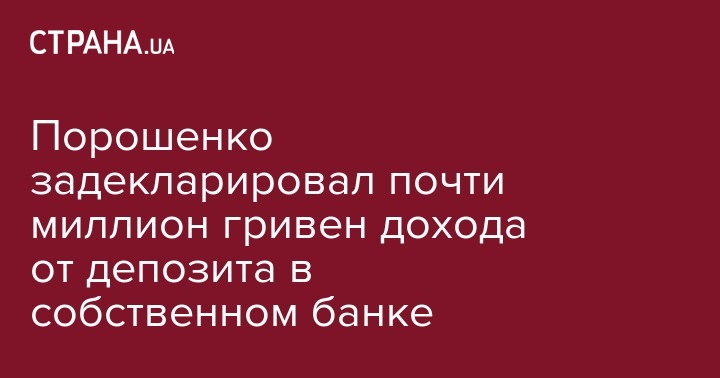Как сообщала "Страна", ранее Порошенко задекларировал еще миллион гривен дивидендов по вкладам в банках.