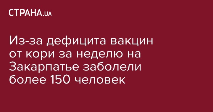 На начало марта 2018 в Закарпатье в наличие только 11.857 доз вакцин от кори. При этом годовая потребность региона составляет 76.585 доз. Дефицит - 85%. При этом в Закарпатской области за неделю зафиксировали 158 новых случаев заболевания.