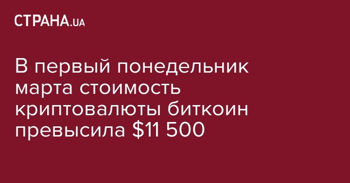 В первый понедельник марта стоимость криптовалюты биткоин превысила $11 500