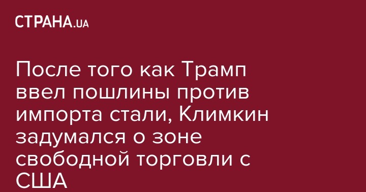 Министр иностранных дел Украины Павел Климкин заявляет, что Украина намерена добиваться введения зоны свободной торговли с Соединенными Штатами Америки, однако рассматривает введение зеркальных мер, учитывая заявление президента США Дональда Трампа о введении пошлины на ввоз в США алюминия и стали.