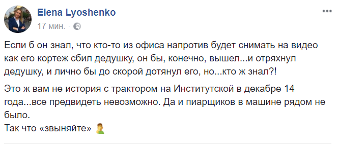 Это ж вам не история с трактором на Институтской в декабре 14 года...все предвидеть невозможно. Да и пиарщиков в машине рядом не было. Так что "звыняйте"".