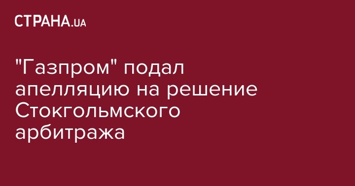 Как сообщалось, 28 февраля Стокгольмский арбитраж удовлетворил требования "Нафтогаза" по иску к "Газпрому". "Нафтогаз" добился компенсации в сумме 4,63 млрд долл. за недопоставку "Газпромом" согласованных объемов газа для транзита. Также "Газпром" должен оплатить 2,56 млрд долл. в пользу "Нафтогаза". За задолженность будут начислять проценты - 526 тыс. долл. в день, начиная с 1 марта.