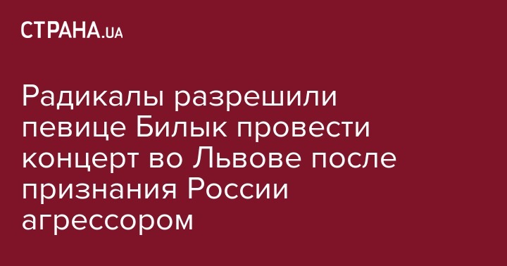 Радикалы разрешили певице Билык провести концерт во Львове после признания России агрессором
