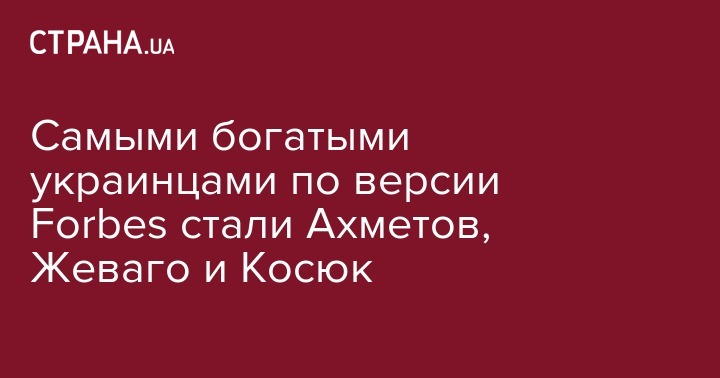 Самыми богатыми украинцами по версии Forbes стали Ахметов, Жеваго и Косюк