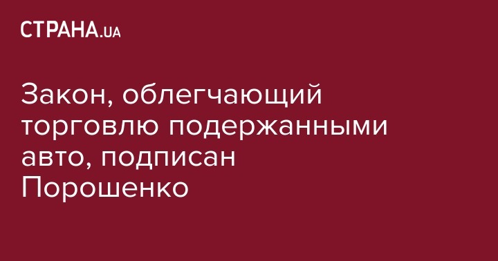 Президент Петр Порошенко подписал закон, облегчающий торговвые операции с подержанными авто. Сообщение об этом опубликовано на сайте Верховной Рады в статусе закона.