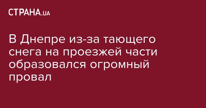 В Днепре из-за тающего снега на проезжей части образовался огромный провал