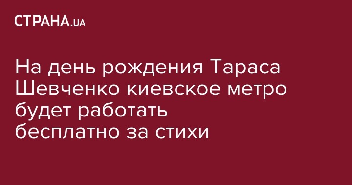 В пятницу, 9 марта, в день рождения Тараса Шевченко, в киевское метро можно будет бесплатно пройти, прочитав стих Тараса Григорьевича. Об этом сообщает пресс-служба киевской подземки в Facebook.