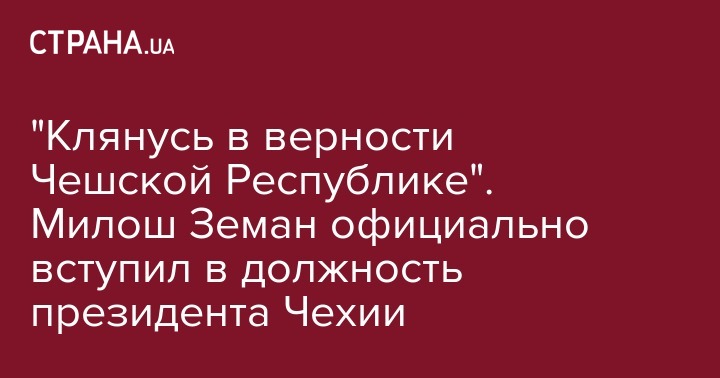 "Клянусь в верности Чешской Республике. Буду исполнять свои обязанности в интересах чешского народа", - произнес президентскую клятву Земан, положа руку на конституцию.