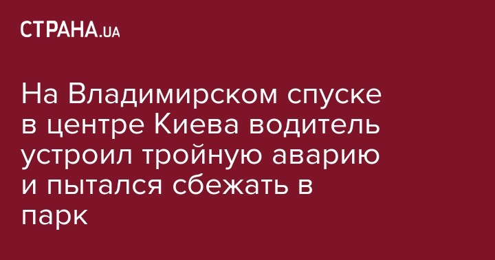 На Владимирском спуске в центре Киева водитель устроил тройную аварию и пытался сбежать в парк