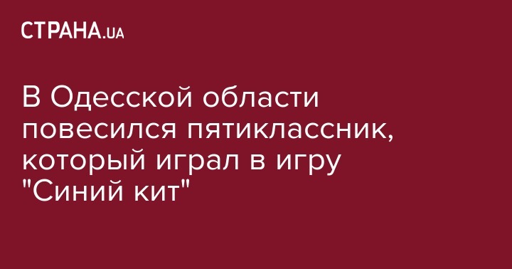 Пятиклассник, которого нашли 8 марта повешенным в селе Одесской области, увлекался суицидальной игрой "Синий кит".