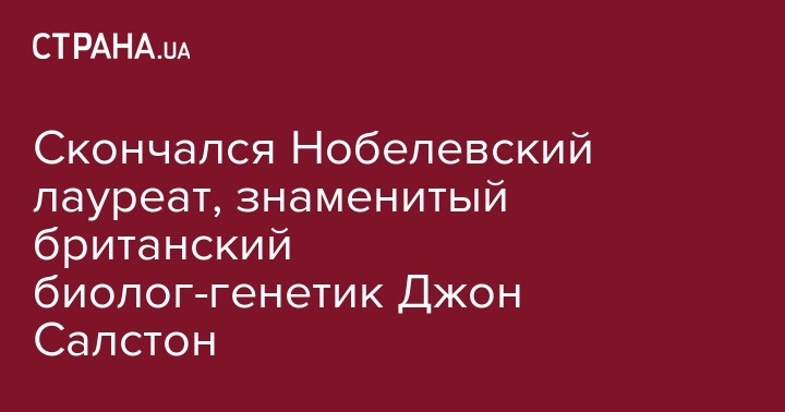 Скончался Нобелевский лауреат, знаменитый британский биолог-генетик Джон Салстон