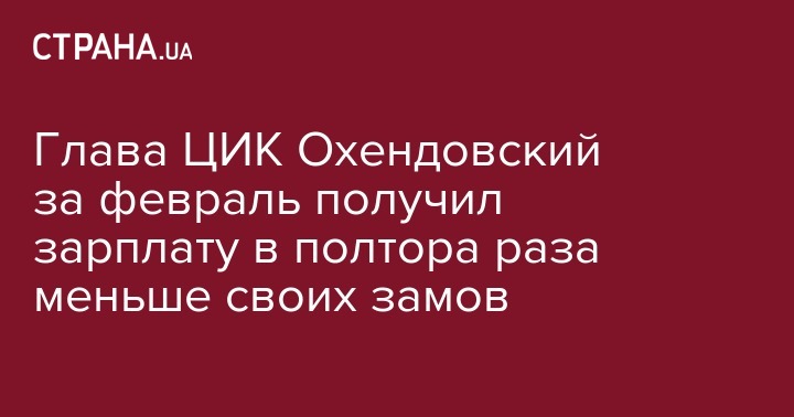 Глава ЦИК Охендовский за февраль получил зарплату в полтора раза меньше своих замов