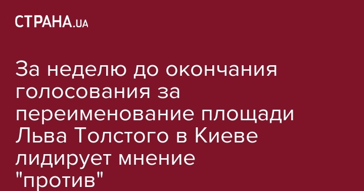 За неделю до окончания голосования за переименование площади Льва Толстого в Киеве лидирует мнение "против"