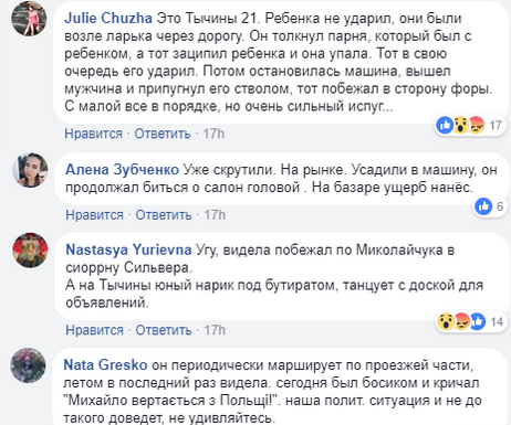 В комментариях пользователи уточнили, что инцидент произошел на проспекте Павла Тычины, 21. По их словам, неадекватный мужчина ударил парня, который стоял с маленькой девочкой. Тот зацепил ребенка, и девочка упала.
