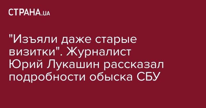 Украинский журналист Юрий Лукашин, в квартире которого сегодня утром силовики провели обыск, рассказал "Стране" подробности визита СБУ.