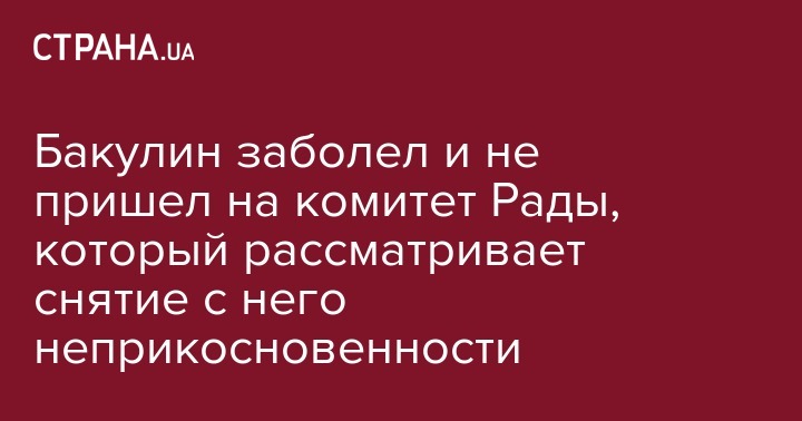 Сегодня, 12 марта, Парламентский комитет по вопросам Регламента и организации работы Верховной Рады рассмотрит вопрос о снятии неприкосновенности с нардепа от "Оппозиционного блока" Евгения Бакулина без него самого, потому что получил письмо о том, что Бакулин лечится. Об этом сообщают "Украинские новости".