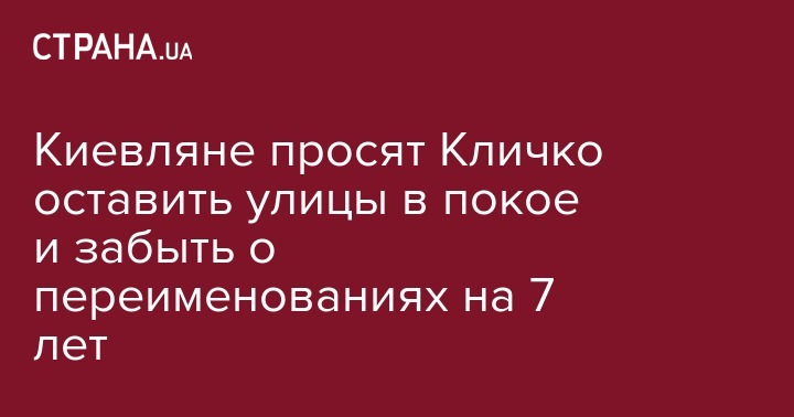 "Переименования в Киеве в рамках декоммунизации уже практически завершены. Чтобы снять социальное напряжение в городе, требуем от Киевского городского совета принять решение о приостановлении (наложение моратория) процесса переименования существующих улиц, бульваров, площадей, переулков сроком на 7 (семь) лет. Это решение городских властей должно стать объединяющим звеном для киевлян, поскольку защитит уже переименованные, согласно закону о декоммунизации объекты, и не позволит превратить память о наших героях и нашей истории на бесконечное топонимическое противоборство", - говорится в тексте петиции.