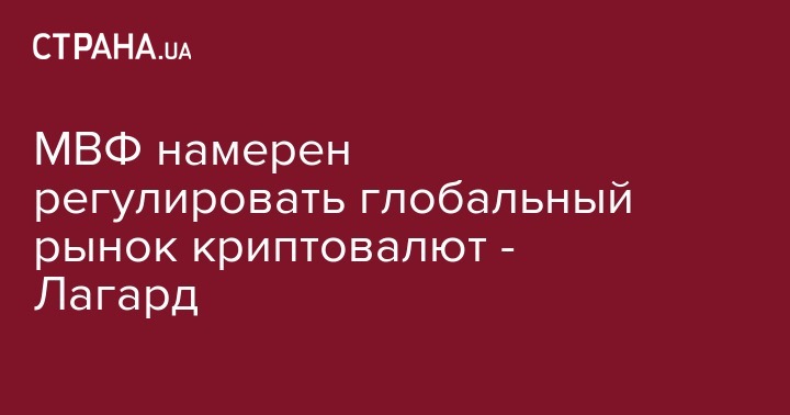 "Ни одна из стран не сможет справиться с этой угрозой в одиночку. МВФ имеет уникальную позицию, являясь форумом для нахождения ответов на вопросы о рынке криптовалют", - отметила его глава.