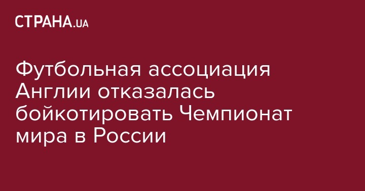 Футбольная ассоциация Англии отказалась бойкотировать Чемпионат мира в России