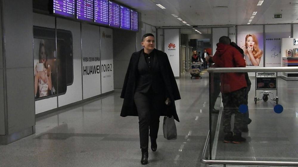 Народный депутат Надежда Савченко прилетела в аэропорт Борисполь рейсом Мюнхен – Киев. В аэропорту ее встречала сестра Вера.