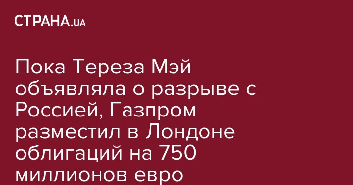 Как передают Ведомости, спрос европейских инвесторов (в том числе британских) на 8-летние облигации "Газпрома" в три раза превысил предложенные 750 млн евро. Процедура размещения проводилась в районе Мэйфэйр, менее чем в двух километрах от Вестминстерского дворца, где в это время выступала премьер-министр.