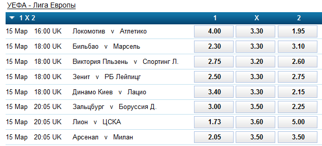 Все ставки на сегодняшние матчи 1/8 Лиги Европы