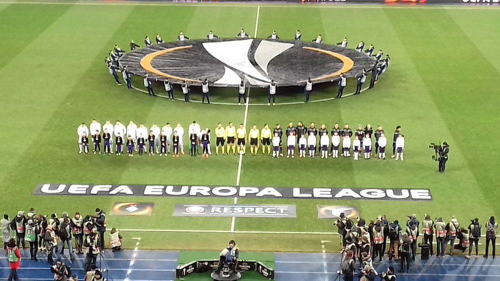 19.55 Команды выходят на поле, послушаем гимн Лиги Европы.