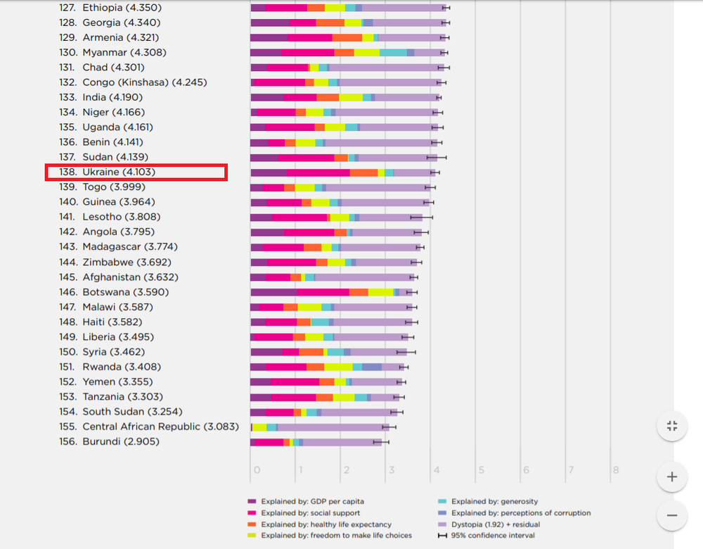 В этом году в рейтинге самых счастливых стран Украина опустилась на 138 место из 156 возможных. При этом, по сравнению с 2017 годом, наша страна скатилась вниз на целых шесть ступеней.