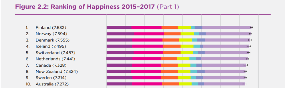 В десятку самых счастливых стран вошли Финляндия, Норвегия, Германия, Исландия, Швейцария, Нидерланды, Канада, Швеция и Австралия.