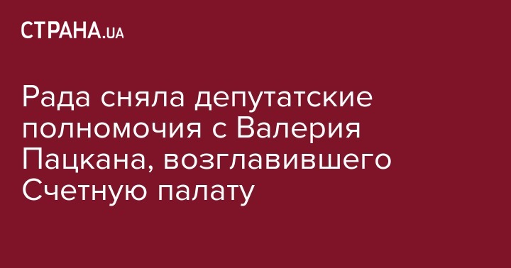 Верховная Рада досрочно прекратила депутатские полномочия Валерия Пацкана (БПП) в связи с назначением на должность главы Счетной палаты. "За" проголосовали 279 народных депутатов, сообщает телеканал "112 Украина"