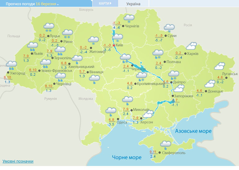 В пятницу, 16 марта, в Украине начнет холодать: днем температура местами опустится ниже нуля. Синоптики обещают осадки в виде дождя и снега.