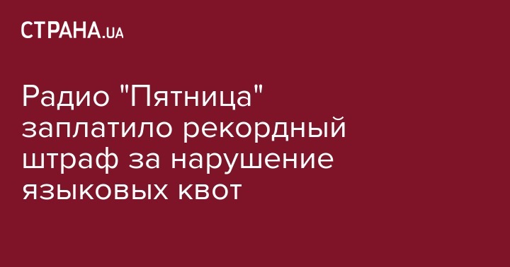 Радио "Пятница" выплатило крупнейший за всю историю языковых квот в Украине штраф -327,8 тыс. гривен.