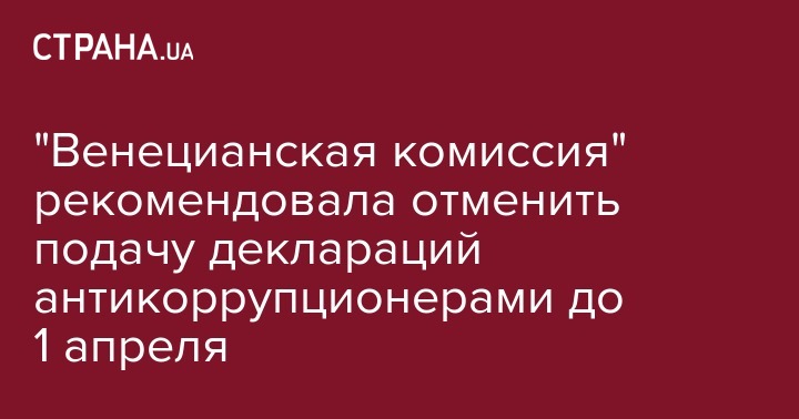 "Венецианская комиссия" рекомендовала отменить подачу деклараций антикоррупционерами до 1 апреля