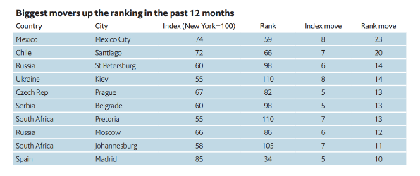 Из-за падения курса доллара ни один из городов США не смог войти в десятку. Эксперты отмечают, что стоимость жизни в городах зависит от их местоположения на карте мира: для европейских городов определяющим фактором являются цены на сферу услуг, для азиатских - стоимость продуктов.